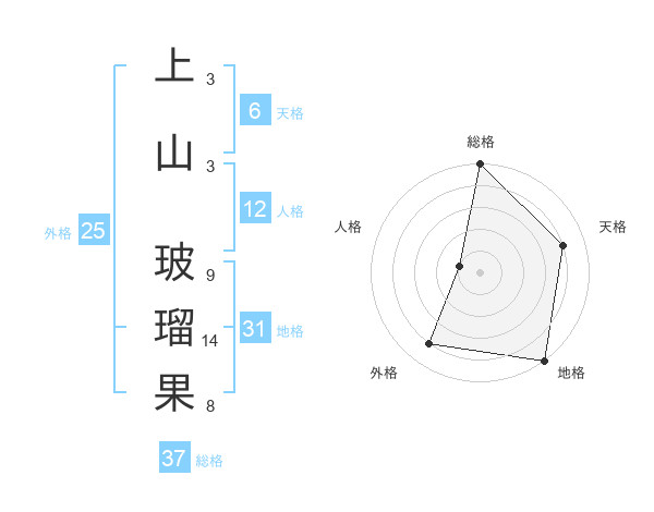 上山 玻瑠果さんの総格は37画の5点