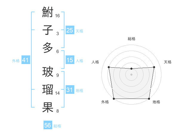 鮒子多 玻瑠果さんの外格は41画の5点!