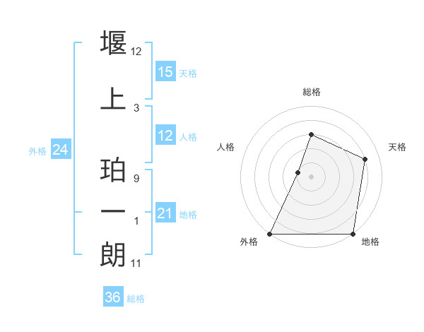 堰上 珀一朗さんを姓名の画数から五運を鑑定