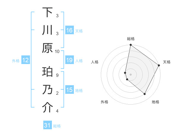 下川原 珀乃介さんの総格は31画の5点!
