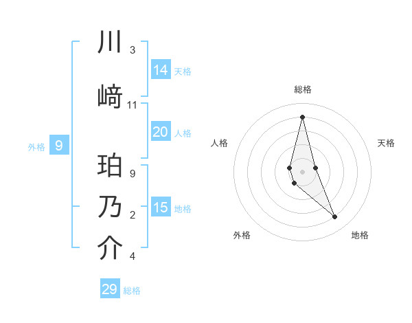 川﨑 珀乃介さんを姓名の画数から五運を鑑定