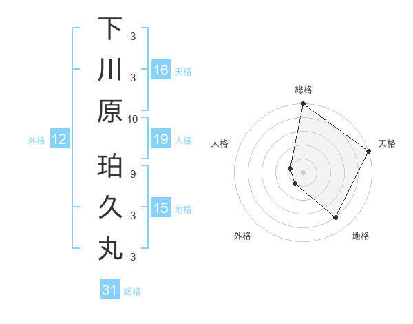 下川原 珀久丸さんの総格は31画の5点!
