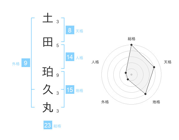 土田 珀久丸さんを姓名の画数から五運を鑑定