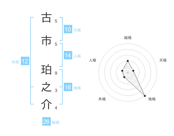 古市 珀之介さんの総格は26画の2点!