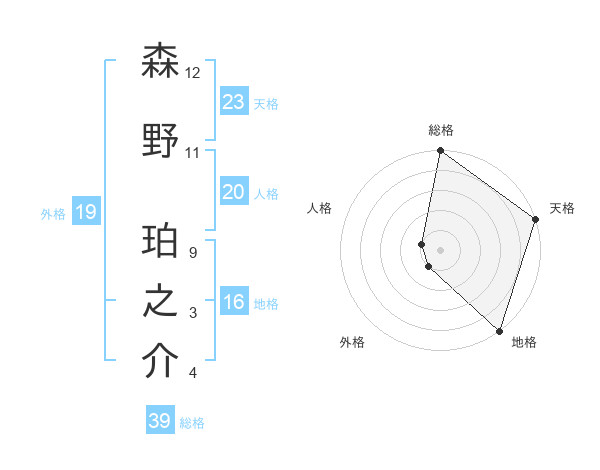 森野 珀之介さんを姓名の画数から五運を鑑定