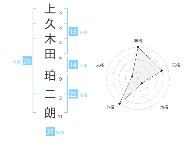 上久木田 珀二朗さんの総格は37画の5点