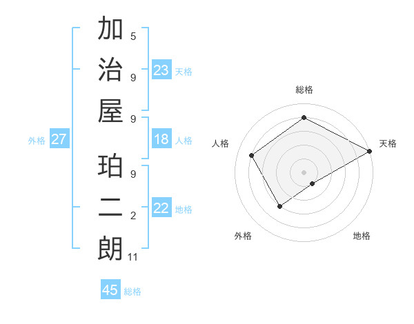 加治屋 珀二朗さんを姓名の画数から五運を鑑定