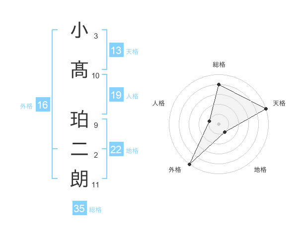 小髙 珀二朗さんの総格は35画の4点!