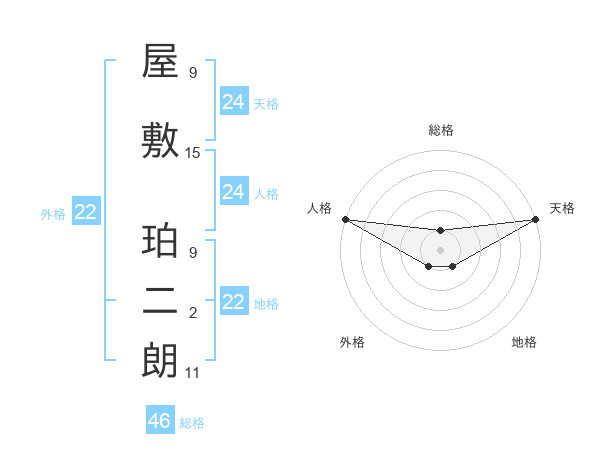 屋敷 珀二朗さんを姓名の画数から五運を鑑定