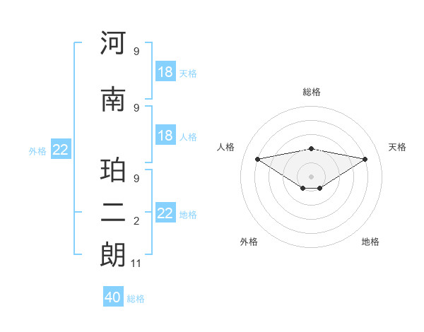 河南 珀二朗さんの地格は22画の1点!
