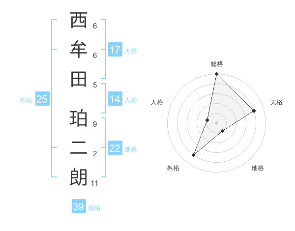 西牟田 珀二朗さんを姓名の画数から五運を鑑定