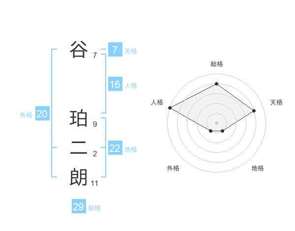 谷 珀二朗さんを姓名の画数から五運を鑑定