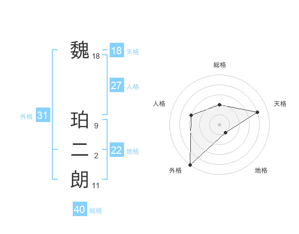 魏 珀二朗さんの天格は18画の4点!