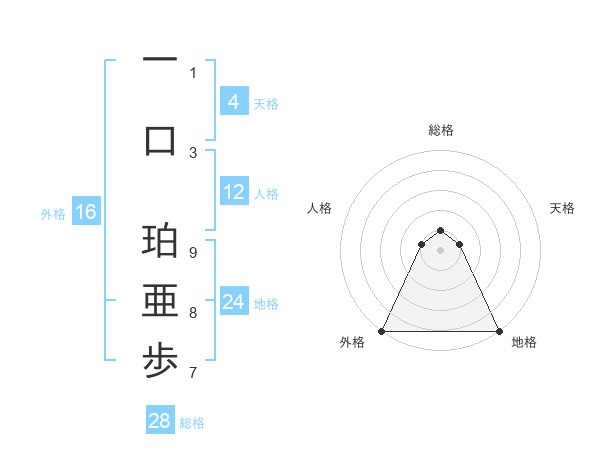 一口 珀亜歩さんを姓名の画数から五運を鑑定