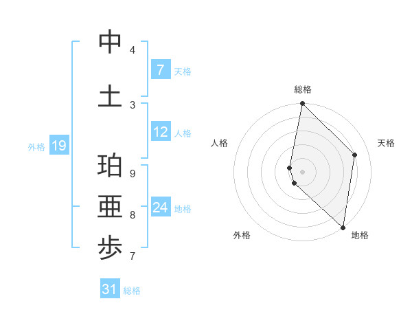 中土 珀亜歩さんを姓名の画数から五運を鑑定