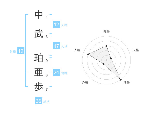 中武 珀亜歩さんを姓名の画数から五運を鑑定