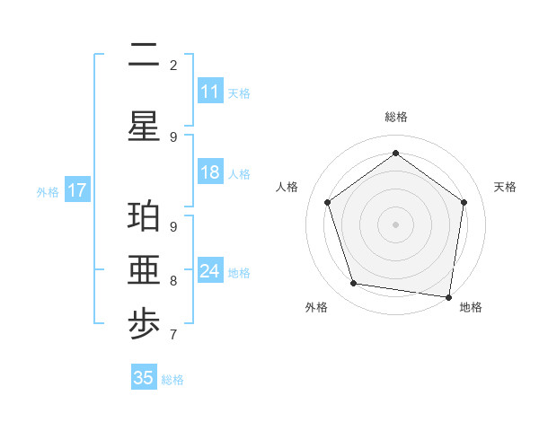 二星 珀亜歩さんを姓名の画数から五運を鑑定