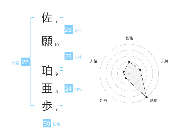 佐願 珀亜歩さんを姓名の画数から五運を鑑定