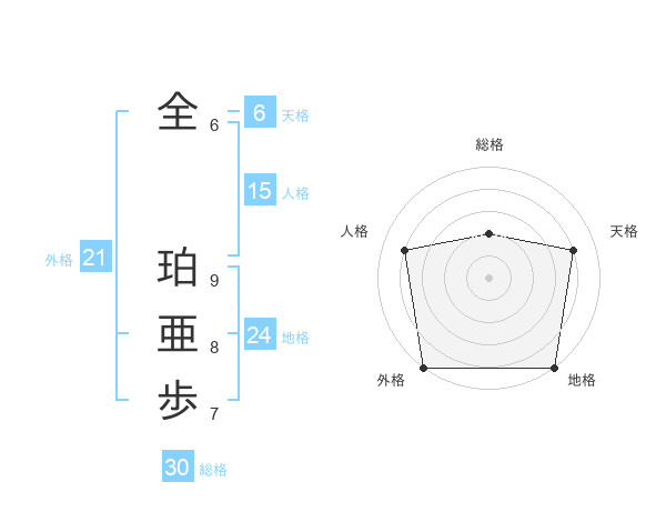 全 珀亜歩さんの総格は30画の2点!