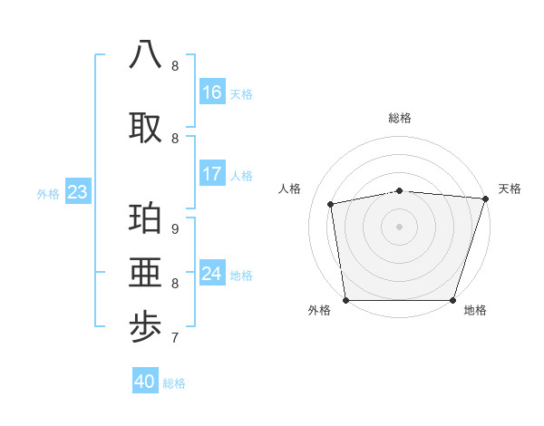 八取 珀亜歩さんの天格は16画の5点!