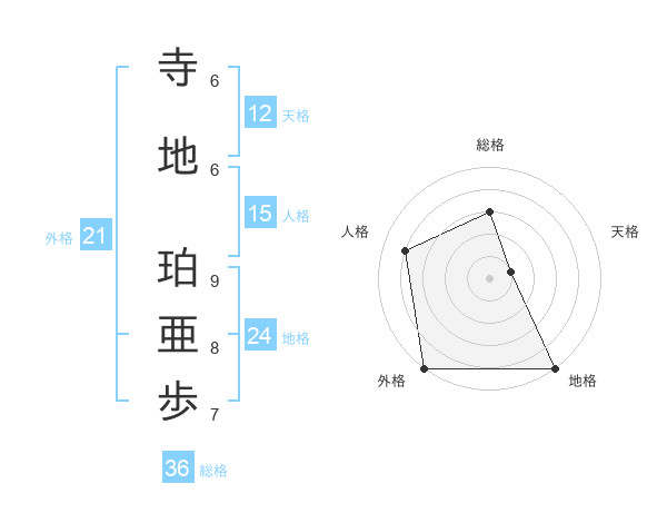 寺地 珀亜歩さんを姓名の画数から五運を鑑定