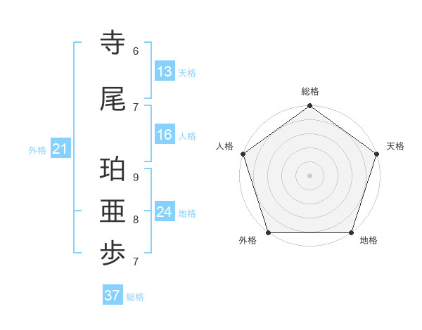 寺尾 珀亜歩さんの総格は37画の5点!