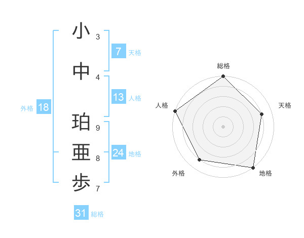 小中 珀亜歩さんの総格は31画の5点!