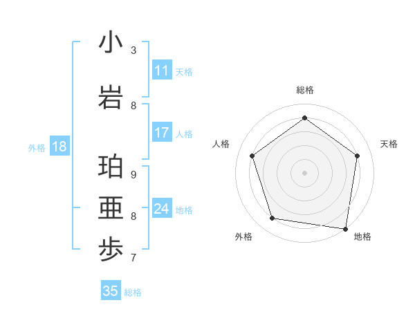 小岩 珀亜歩さんの総格は35画の4点!