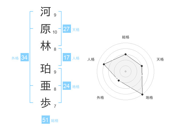 河原林 珀亜歩さんの総格は51画の3点!