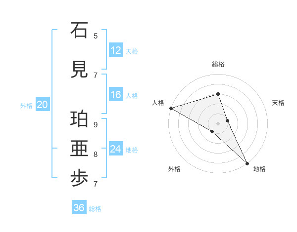 石見 珀亜歩さんの天格は12画の1点!