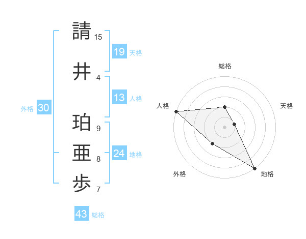 請井 珀亜歩さんを姓名の画数から五運を鑑定