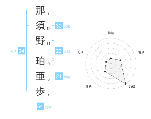 那須野 珀亜歩さんを姓名の画数から五運を鑑定