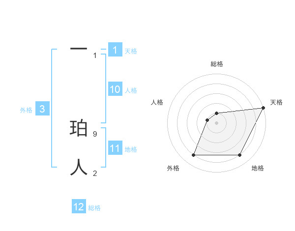 一 珀人さんの総格は12画の1点!