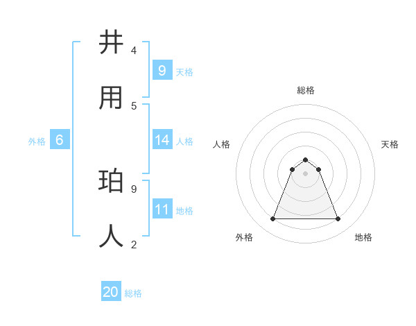 井用 珀人さんの総格は20画の1点!