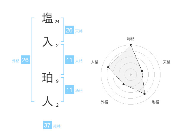 塩入 珀人さんの総格は37画の5点!