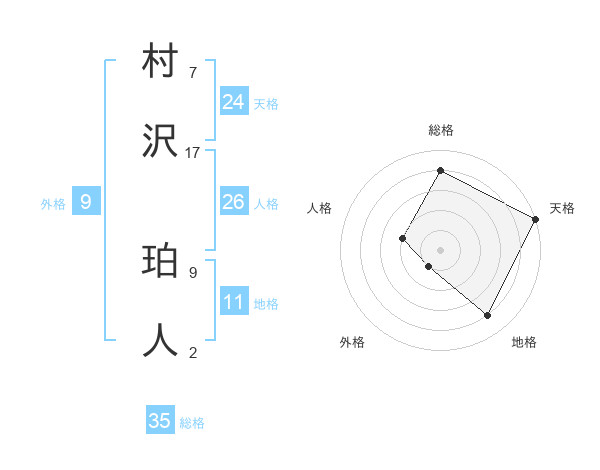 村沢 珀人さんの総格は35画の4点!