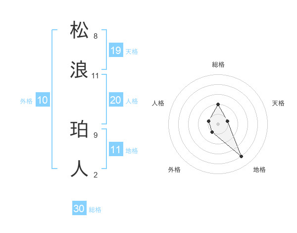松浪 珀人さんの総格は30画の2点!