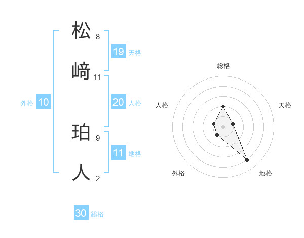 松﨑 珀人さんを姓名の画数から五運を鑑定