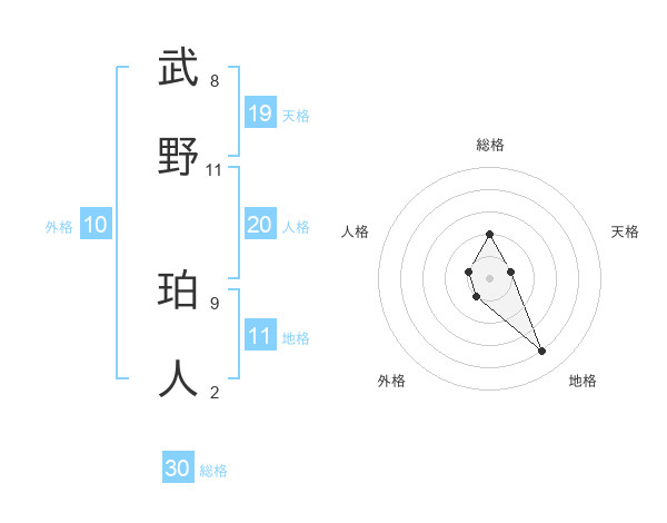 武野 珀人さんの総格は30画の2点!