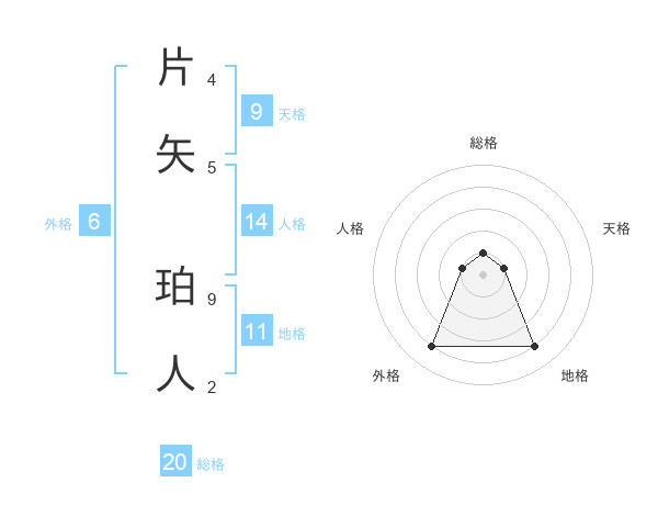 片矢 珀人さんを姓名の画数から五運を鑑定