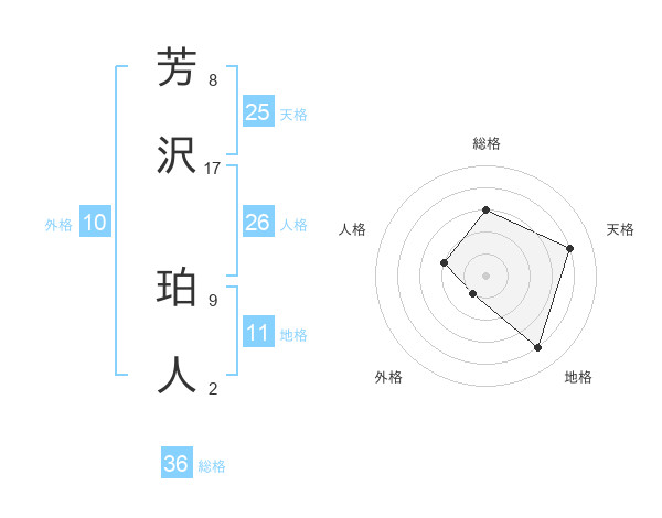 芳沢 珀人さんの天格は25画の4点!