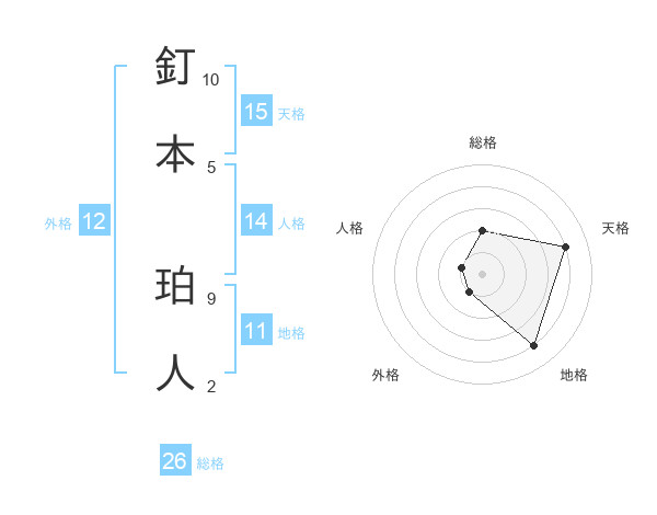 釘本 珀人さんの総格は26画の2点!