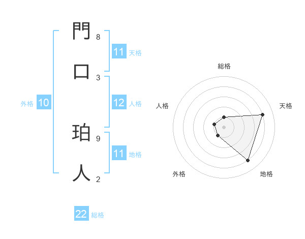 門口 珀人さんの総格は22画の1点!