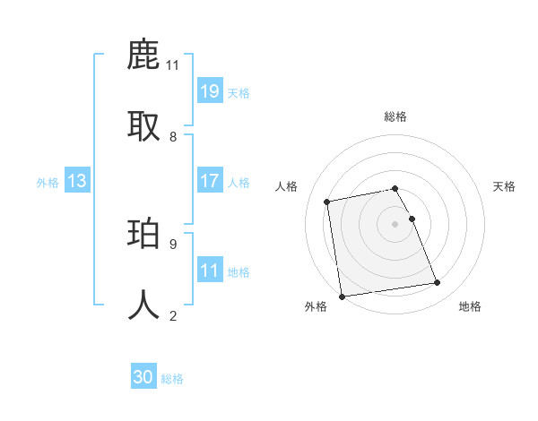鹿取 珀人さんを姓名の画数から五運を鑑定