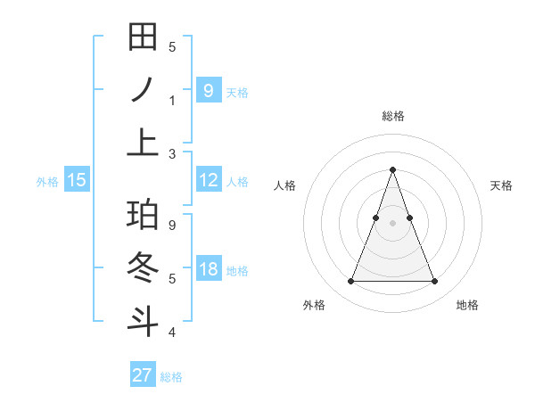 田ノ上 珀冬斗さんの総格は27画の3点!