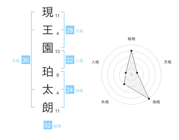 現王園 珀太朗さんを姓名の画数から五運を鑑定