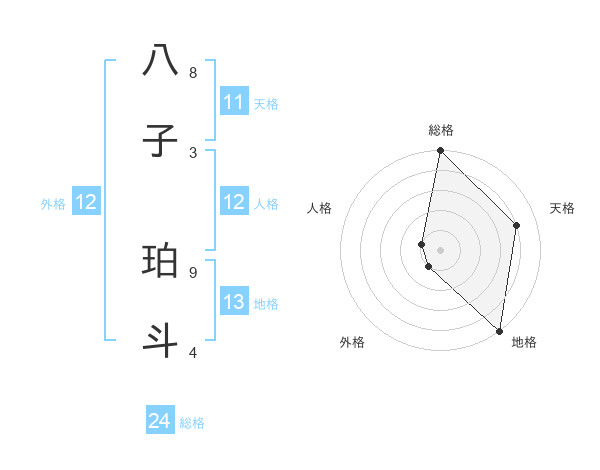 八子 珀斗さんの総格は24画の5点!