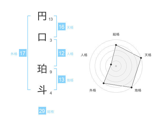 円口 珀斗さんの総格は29画の4点!