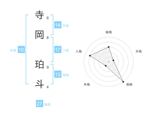 寺岡 珀斗さんの天格は14画の1点!