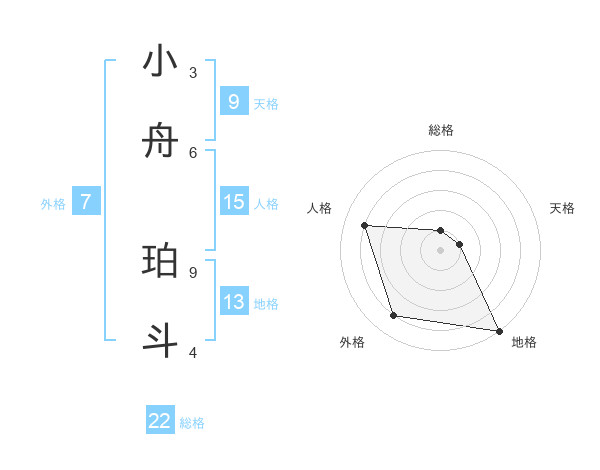 小舟 珀斗さんの総格は22画の1点!